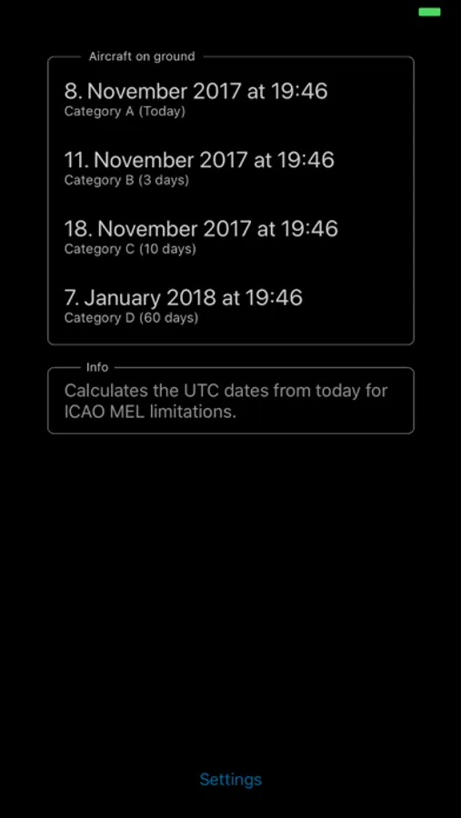 M.E.L.C. is a tool for the aircraft engineers to calculate the expire date (with Category A, B, C and D) of defected airplanes in accordance with the minimum equipment list.