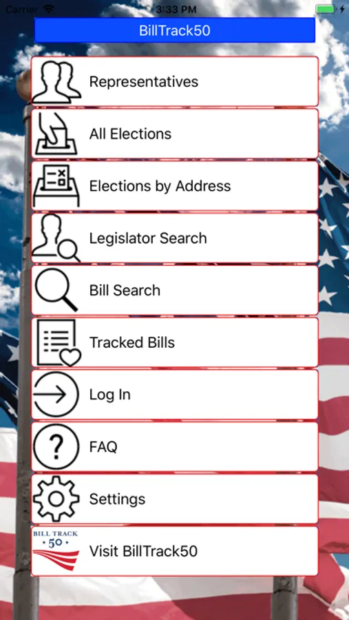 BillTrack50 wants to help you get involved and live up to your civic duties. Look up who represents you based on your address. See upcoming elections. Review the bills your legislators have sponsored and review their votes on issues that matter to you. Learn how to contact your representatives to share your opinions on how they are doing. Research bills by keyword in your state, Congress, or across the whole country at once to stay on top of exactly what is really happening. You can also view who is contributing to your representatives and how they are are spending that money. And you can view census data to understand the demographics of you representative's district.