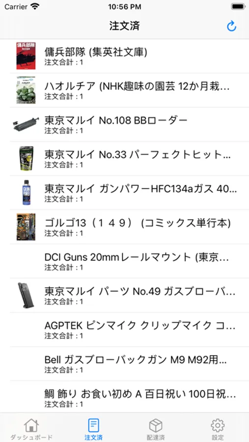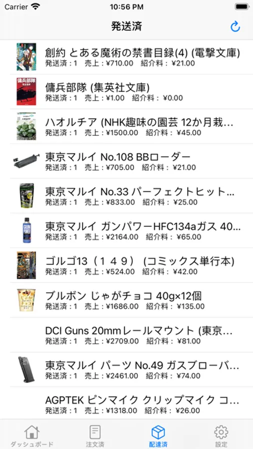 - 発送済みの商品一覧