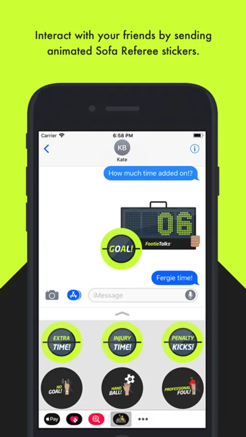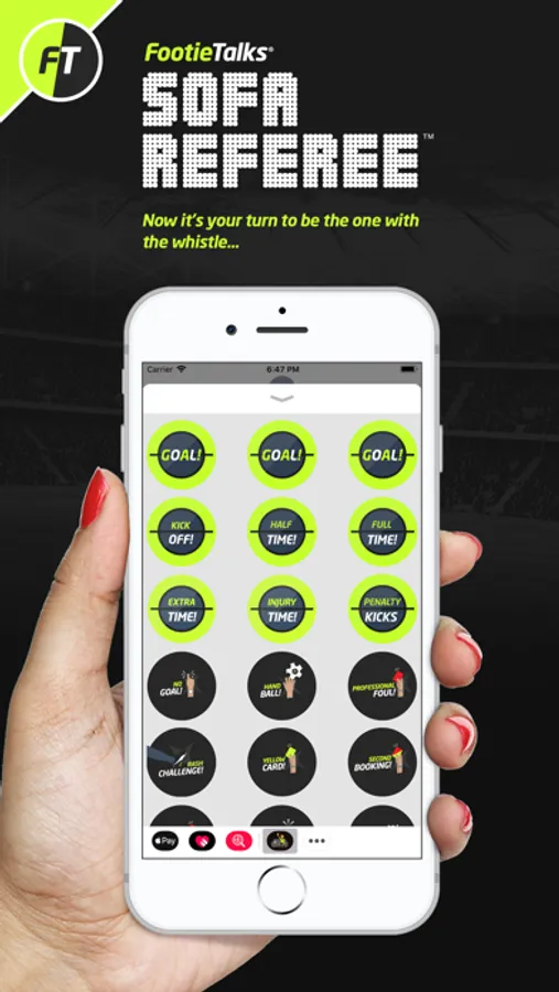 Ref the game from the comfort of your sofa and share the banter via iMessage with FootieTalks® Sofa Referee.