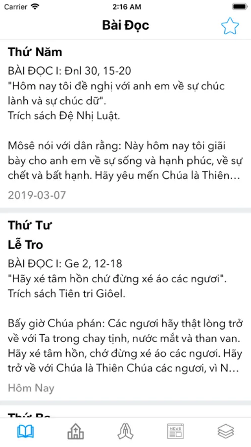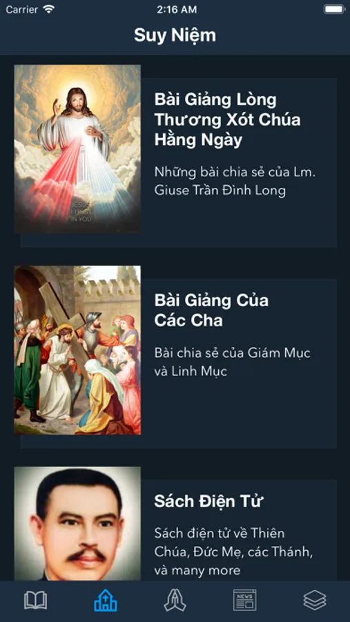 - Hiển thị ảnh cho từng ngày kèm theo 1 câu trích trong lời chúa, trong bài đọc, sách kinh, etc.