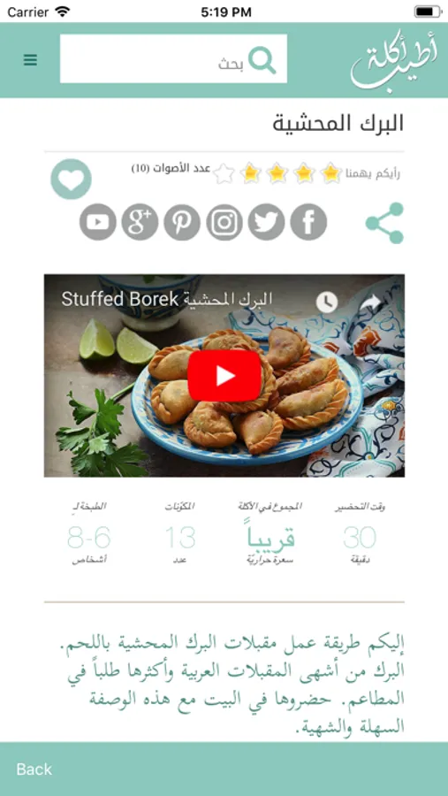 Atyab Akle is an Arabic Website and App offering authentic and tested recipes for different kinds of international cuisines with a main focus on the Middle-Eastern and Arabic food. Atyab Akle provides its users with detailed recipes supported by videos executed by professional chefs and categorized by main ingredient, meal type, cuisine and occasion. The Atyab Akle application also provides cooking tips, meal programs and nutritional facts.