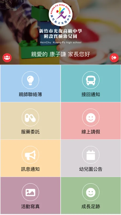 包含:幼兒親師聯絡簿 自動點名到校系統 家長到校接送通知 線上問卷系統 親師互動區 電子行事曆 電子相簿 作品影片...等等
