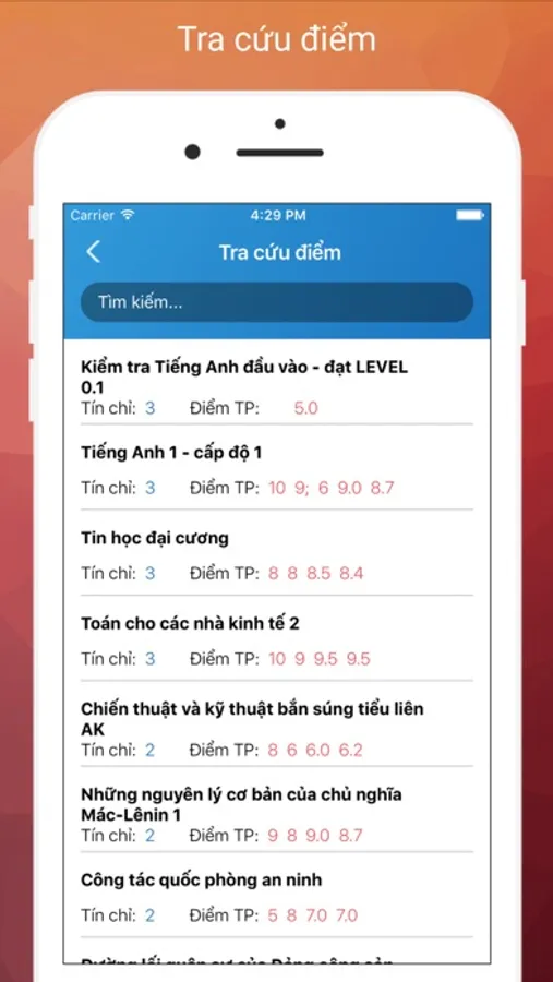 • Xem bảng điểm thành phần và trung bình tích lũy.