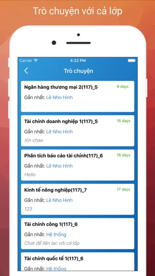 • Trao đổi tin nhắn trực tiếp với lớp học phần.