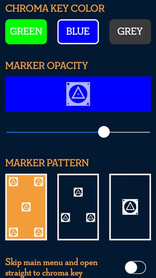 When you're filming your talent as they're using an iPhone or an iPad, you need the device to show a chroma key you can count on. At Koi, we got tired of setting up chroma key images and tracking markers, and wanted a solution where the talent could actually touch the screen. Plus, we didn't want to have to adjust our sleep mode every time. ChromaTrack makes it easy. Set the screen color, marker opacity, and tracking pattern, then launch. When you’re done, just tap with three fingers to get out of the screen.