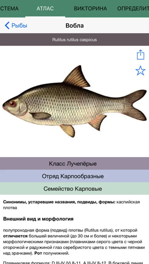 Возьми с собой на рыбалку, в поход, в экспедицию – определяй рыб по внешнему виду и морфологическим признакам – прямо в природе, у водоёма или дома! Незаменимый справочный и образовательный ресурс для рыбаков, учащихся, преподавателей, родителей, для всех любителей природы!
