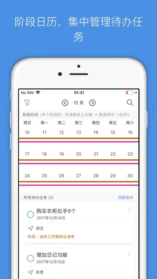 4. 强大而全面的阶段日历,协助你合理安排工作进度