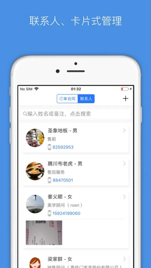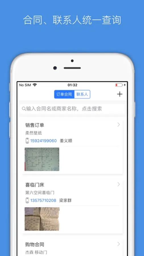 6. 将联系人、订单合同、物品测量有机的结合,购买建材的沟通,从售前、到售后一手掌握