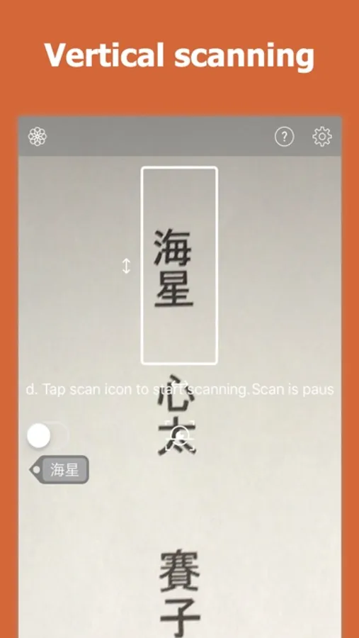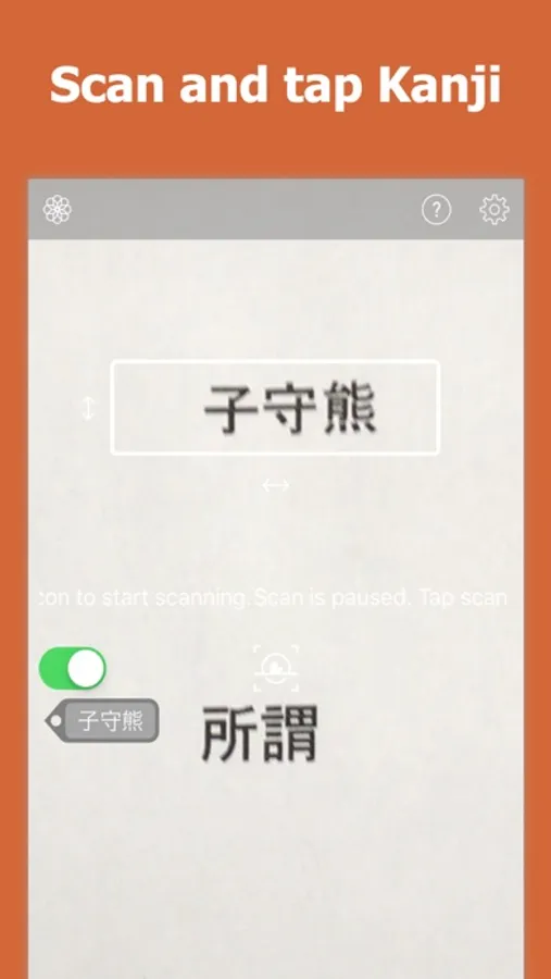 1. Place the target word in the frame and press the scan button.