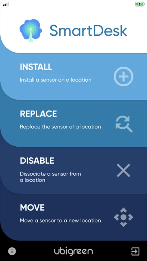 This app allows to INSTALL / REPLACE / DISABLE / MOVE Ubigreen SmartDesk sensors: