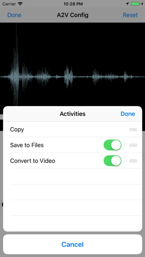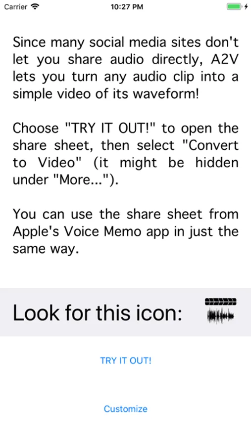 Since many social media sites don't let you share audio directly, A2V lets you turn any audio clip into a simple video of its waveform!