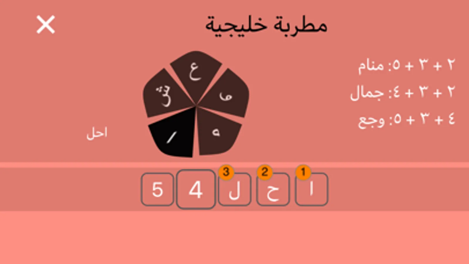 عند لمس كل مربع تظهر مجموعة من الحروف لاختيار الحرف الصحيح