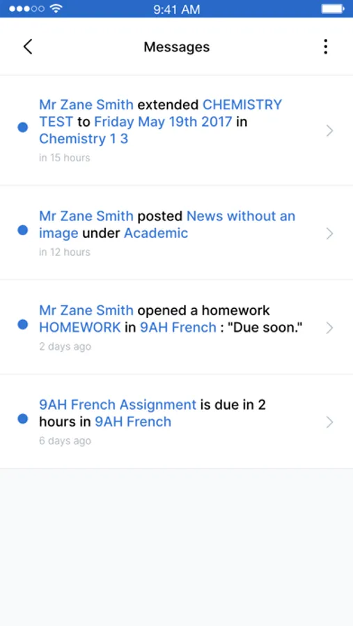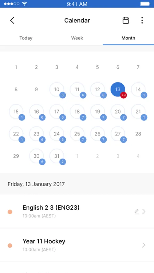Calendar: the Calendar provides parents, teachers and students a personalised view of what's coming up for the day or in the future. Students can also receive reminders when the due date for their work is approaching