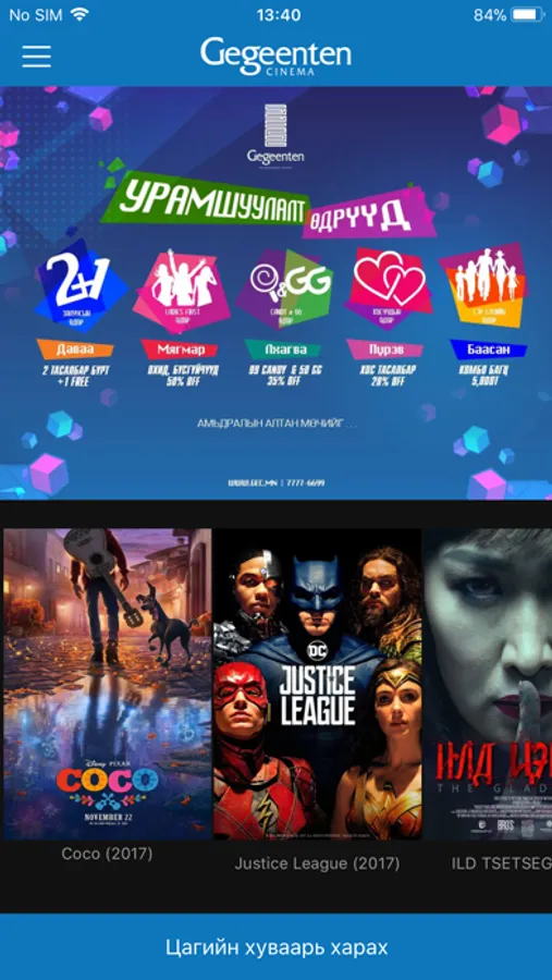 Гэгээнтэн энтертайнмент төвийн үнэгүй аппликэйшиныг та өөрийн гар утас болон мобайл төхөөрөмжиндөө татан суулгаснаар Гэгээнтэн кино театрын тасалбар захиалгын системд холбогдож үзвэрийн тасалбар захиалан авах, үзвэрийн мэдээллийг авах боломжтой.
