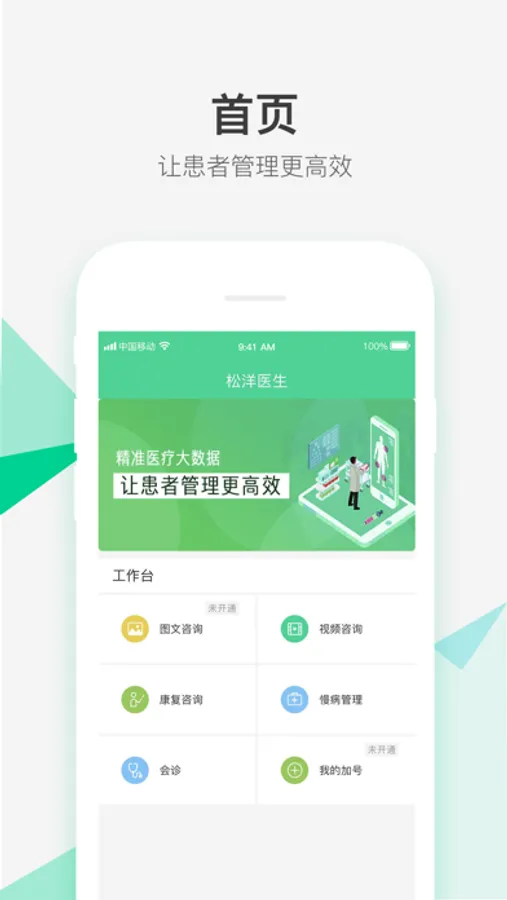 松洋医生APP帮助医生、护士、医生助理快速查询待完成工作,并提供工作任务查询、处理、用户管理等多种功能,工作起来更轻松省心。同时,通过快速查看用户信息、健康体征,使一对一的医疗服务更加精准;音视频的健康巡查功能,让医患沟通更高效。