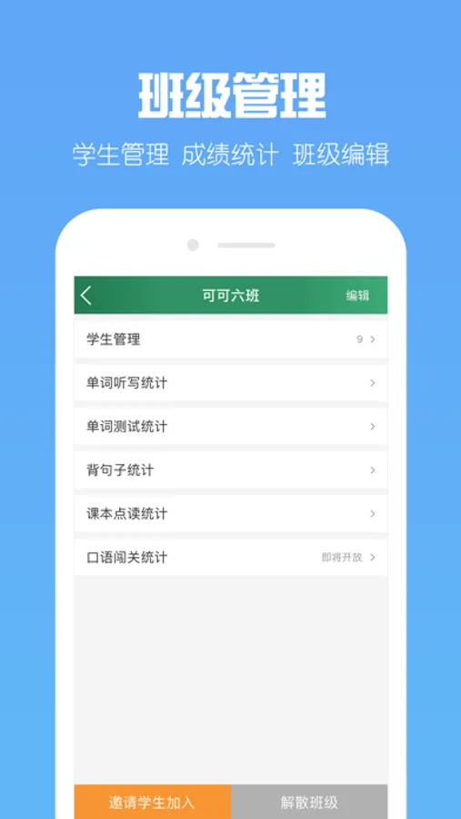 1、班级管理:支持创建、解散和维护自己的班级。