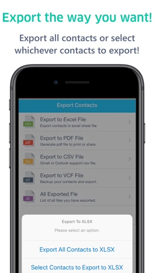 1. Export contacts to XLSX, PDF, CSV or VCF file format