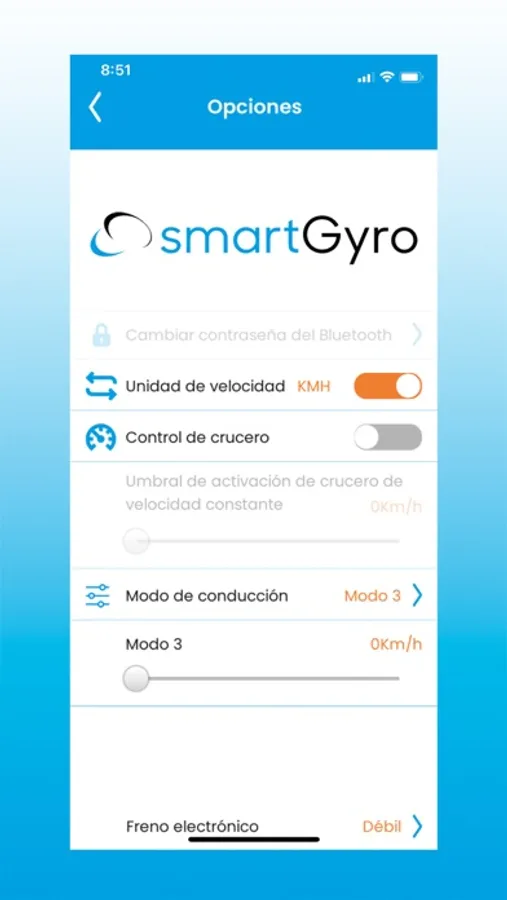 Aplicación para vehículos eléctricos smartGyro que ofrece a sus usuarios de patinetes, información y ajuste de sus componentes.