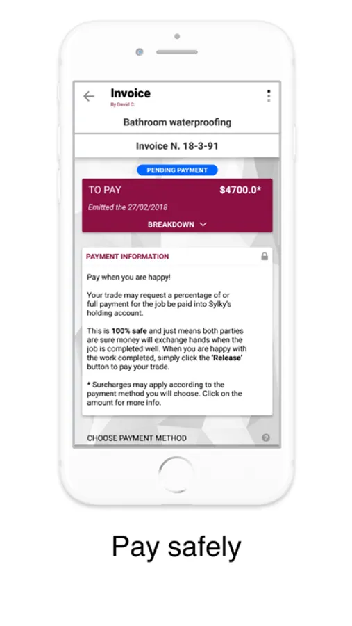 You or your tradesperson can ask for some, or all of the jobs worth be placed in the Sylky escrow account to only be released by the client when both parties are happy with the job.