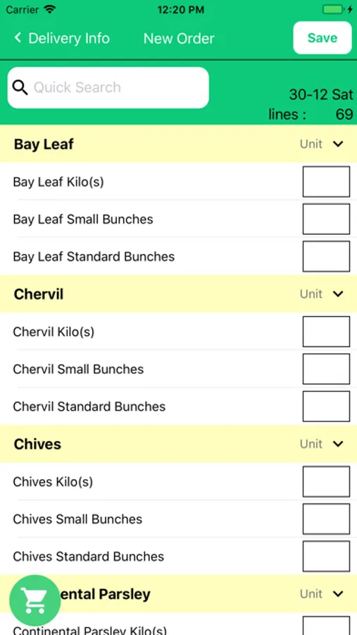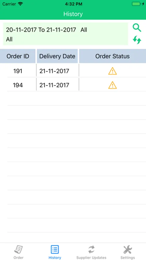 The app also has cut off times for when orders needs to be placed. App also has historical orders placed prior.