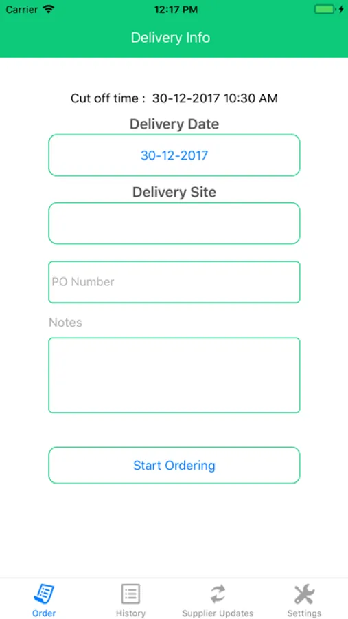 The app also has cut off times for when orders needs to be placed. App also has historical orders placed prior.