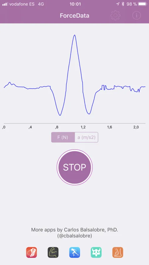 ForceData is a very simple app that uses the sensors of the iPhone, iPad or Apple Watch to measure acceleration, velocity and force. Also, it exports filtered data to a CSV file. This CSV file is already prepared to plot force-time, velocity-time and acceleration-time curves easily.