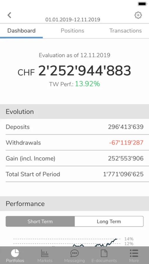 - A detailed analysis of one or more consolidated portfolios, their exposure by asset class or per currency, their performance and their transactions;
