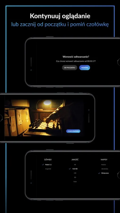 - najnowocześniejsze rozwiązania technologiczne: tworzenie profili i „mojej” listy, możliwość pomijania czołówki, przewijania poklatkowego i kontynuowanie oglądania w miejscu, gdzie się skończyło;