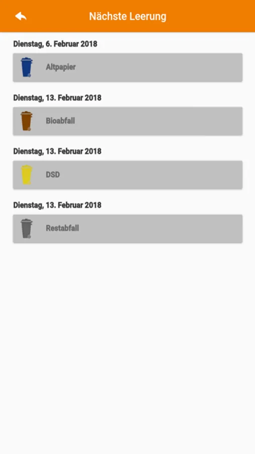 - Online-Abfuhrkalender mit Erinnerungsfunktion zum Herausstellen der Behälter. Mit dem Abfuhrkalender verpassen Sie keinen Abfuhrtermin inkl. der Berücksichtigung von Feiertagsverschiebungen.