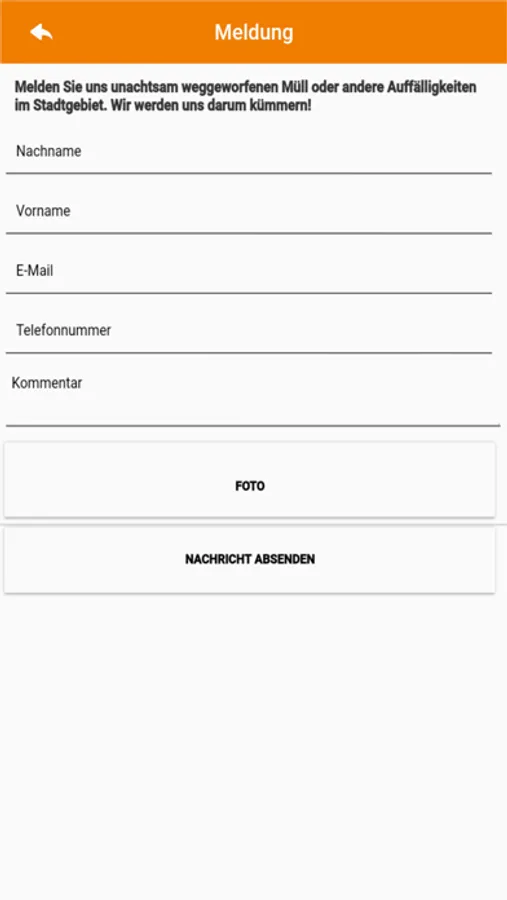 - Meldungsfunktion - melden Sie uns Verunreinigen oder andere Sachverhalte einfach per APP.