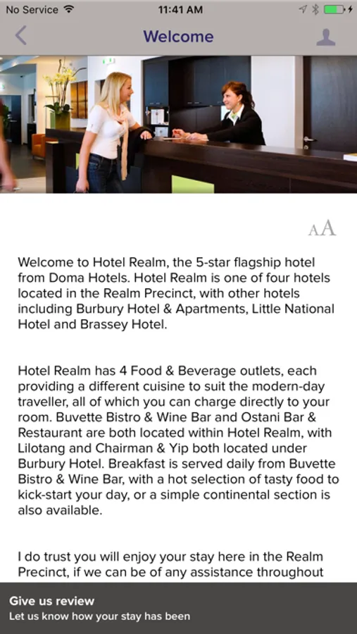 In 2017, Hotel Realm was awarded by the ACT Australian Hotels Association, the Best Meetings & Event Hotel and Best Deluxe Accommodation in Canberra.