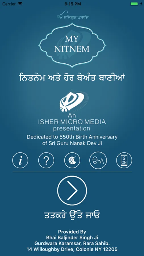 After providing Gurbani Explorer we are delighted to present and provide MyNitnem on behalf of Isher Micro Media for the Gurbani lovers worldwide. It is launched on the auspicious occasion of 352nd birth anniversary of Sri Guru Gobind Singh ji and dedicated to the 550th birth anivarsary of Sri Guru Nanak Dev ji. This app is digital composition of Banis read as daily prayer by the Sikh masses. It is generally called Gurbani Gutka, Sundar Gutka or Nitnem Gutka when provided in printed format. The customisability, simplicity and flexibility of this application make it more beautiful and user friendly.