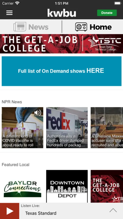 • The KWBU Public Radio App displays the web page associated with the program or program segment you are listening to On Demand so you can explore for more information.