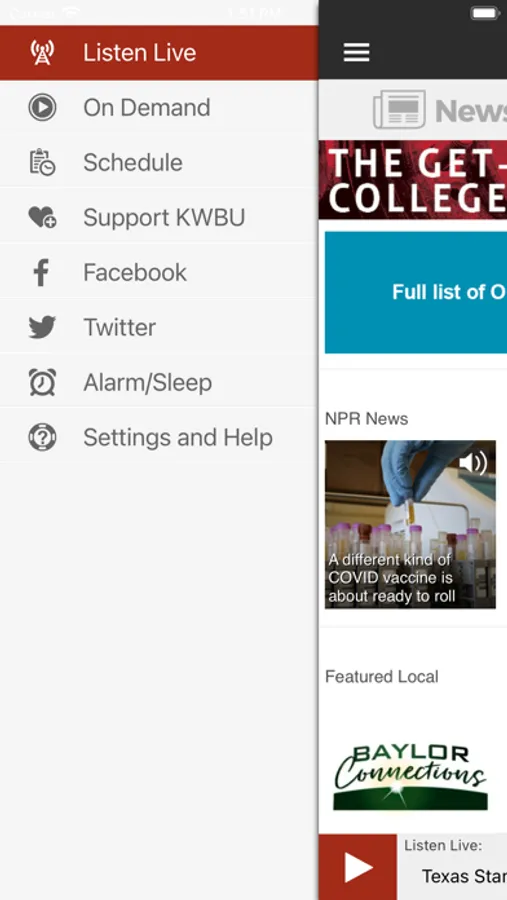 The KWBU Public Radio App allows you to listen to KWBU, pause and rewind the live audio, and view the program schedule all at once. You can explore On Demand content and wake up to KWBU with the alarm clock.