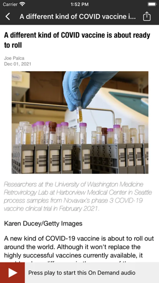 • When listening to programs, individual segments (when available) are listed so you can review and choose one or listen to the entire program.