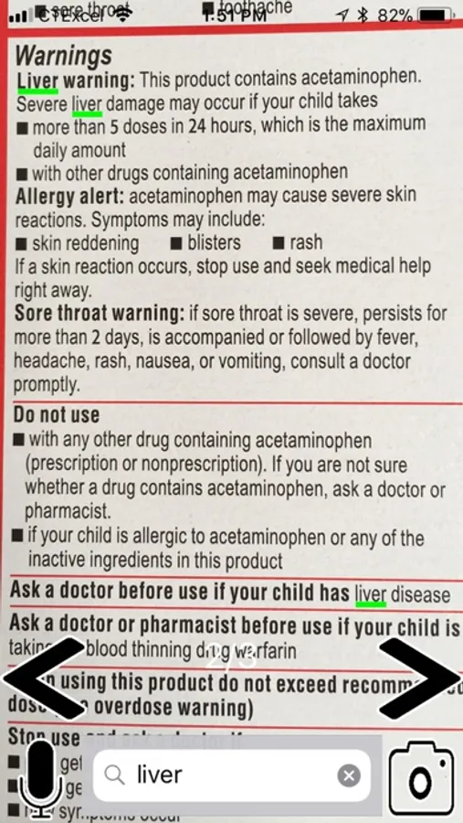 Point your camera to documents, product labels, bank statements, or restaurant menus. Speak your keywords, the app will locate the areas of interest for you. Then you may zoom in to read details.