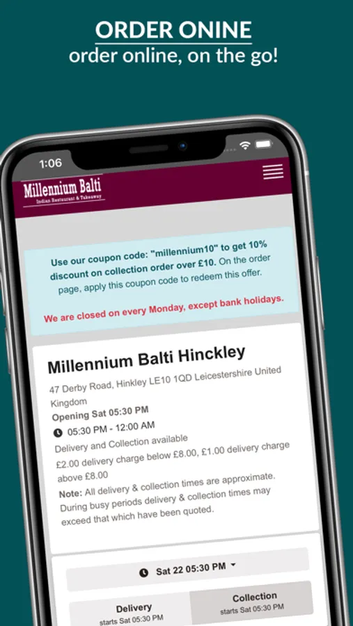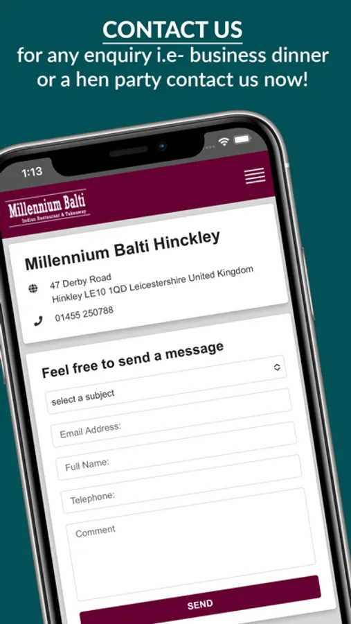 Millennium Balti is an Indian Restaurant & Takeaway in 47 Derby Rd, Hinckley, LE10 1QD, UK. We are offering 10% off, when you order using our app. Our app got lots of useful features-