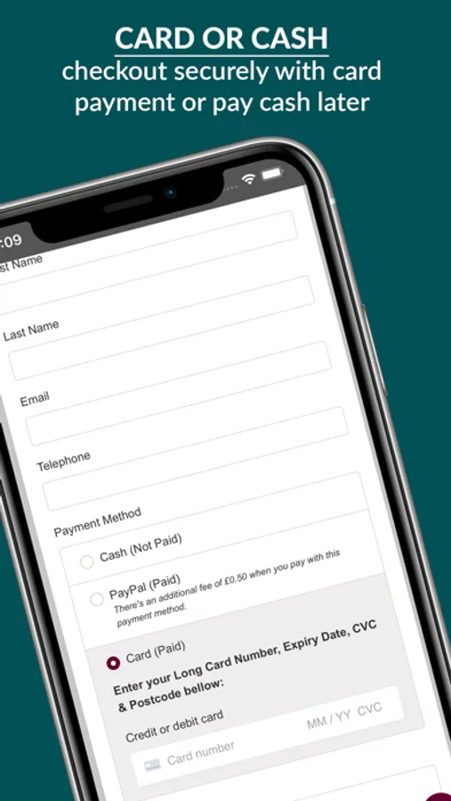 - pay by card or cash safely & securely
