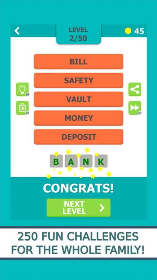 The app will test your brain, ingenuity and vocabulary. Hours and hours of fun are guaranteed with this simple and addictive trivia game! A lot more levels will be added soon in the updates.