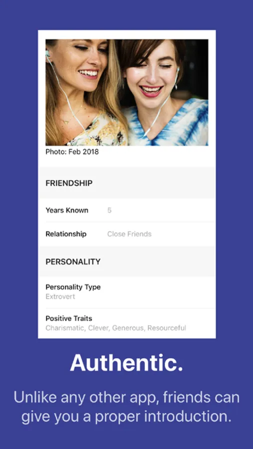 Your Sphere of Trust is made up of trusted friends who know you best. Invite them to highlight your personality. You may think that you’re funny or witty, but is that really one of your core traits and how your closest friends see you? Get introduced and find people who like you for you.