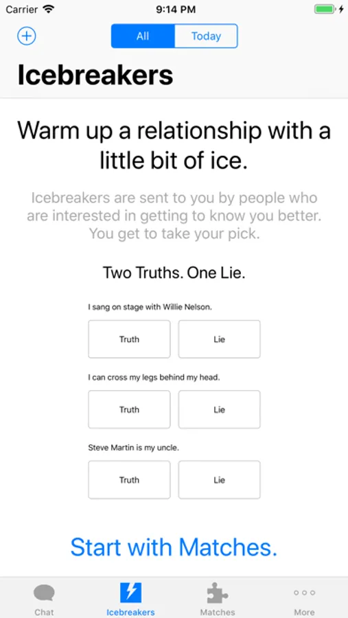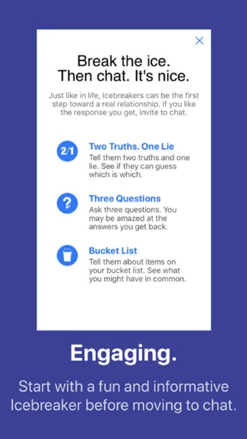 3. Break the ice with one of our fun icebreakers. You can choose from Two Truths. One Lie, Ask Question or Bucket List.
