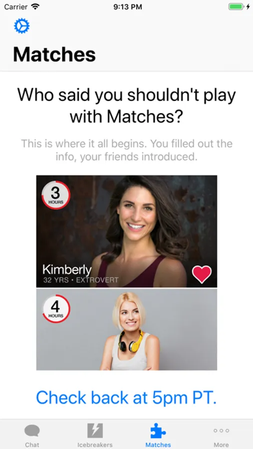 2. Around 5 PM PT daily, you can receive up to 5 curated matches based on the information you provided and how your Sphere of Trust described you.