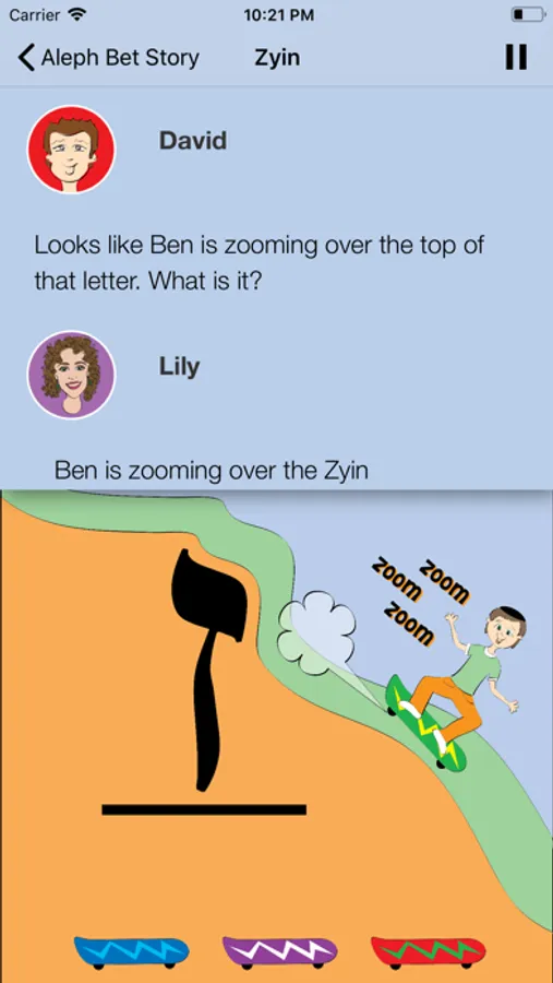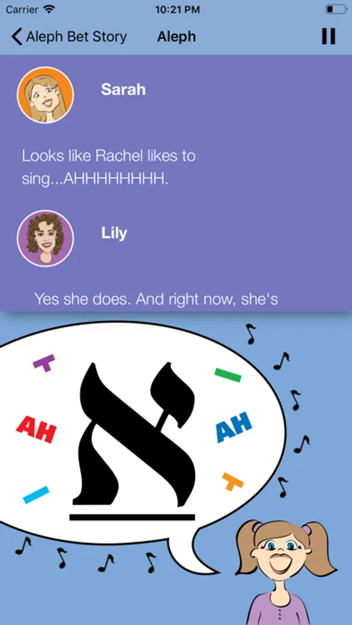 Welcome to The Aleph Bet Story! Each Hebrew letter comes to life in a whimsical story and colorful picture of its own. Sarah and David and their young friends Ben and Rachel want to share their adventures with you. Along the way, you'll join David at a baseball game, see Ben in outer space, see Ben and Rachel in the Garden of Eden and join Sarah as she dreams about her wedding day. These are just some of the fun stories that you'll see and hear as you learn the Hebrew letters. Remembering the Aleph Bet was never so easy and so much fun!