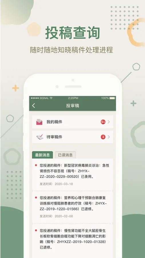 10.投稿查询:实时查询稿件审理进程,实时获悉稿件录用动态。
