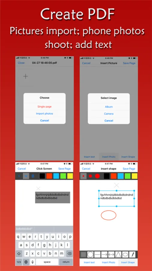 PDF creation: cell phone photographing, batch import of images to generate PDF, single addition of PDF pages;