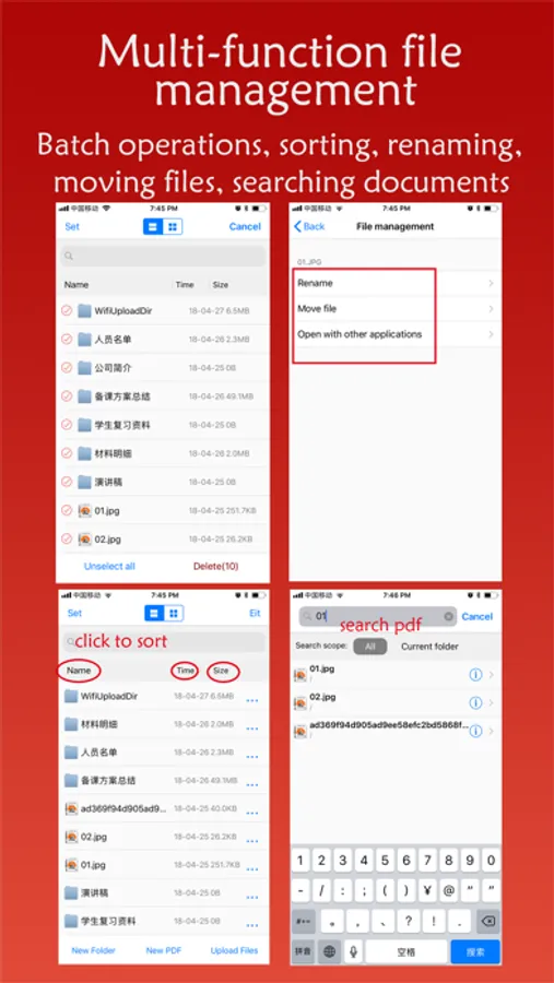 PDF Sharing: Download files to a computer, upload to mobile phones, send to WeChat, QQ, etc.