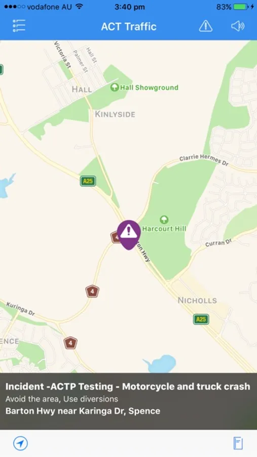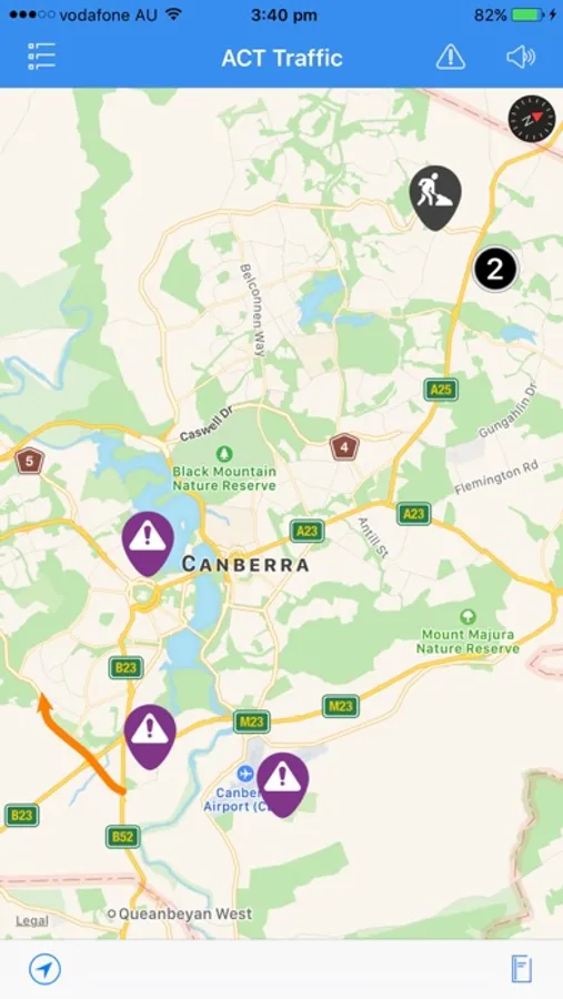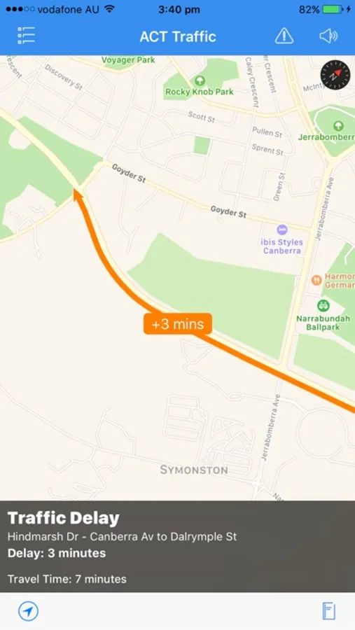 The ACT Traffic app uses the Bluetooth beacon network to receive delay information at locations approaching the incidents.