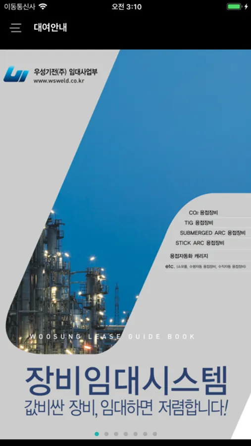 장비 임대에서부터 정비에 이르기 까지 철저한 운영게획과 합리적인 가격등의 천문적인 장비 운영체제를 갖추고 국내외 건설시장의 용접시공 및 공기 단축을 위해 양질의 서비스를 제공하고 있습니다.