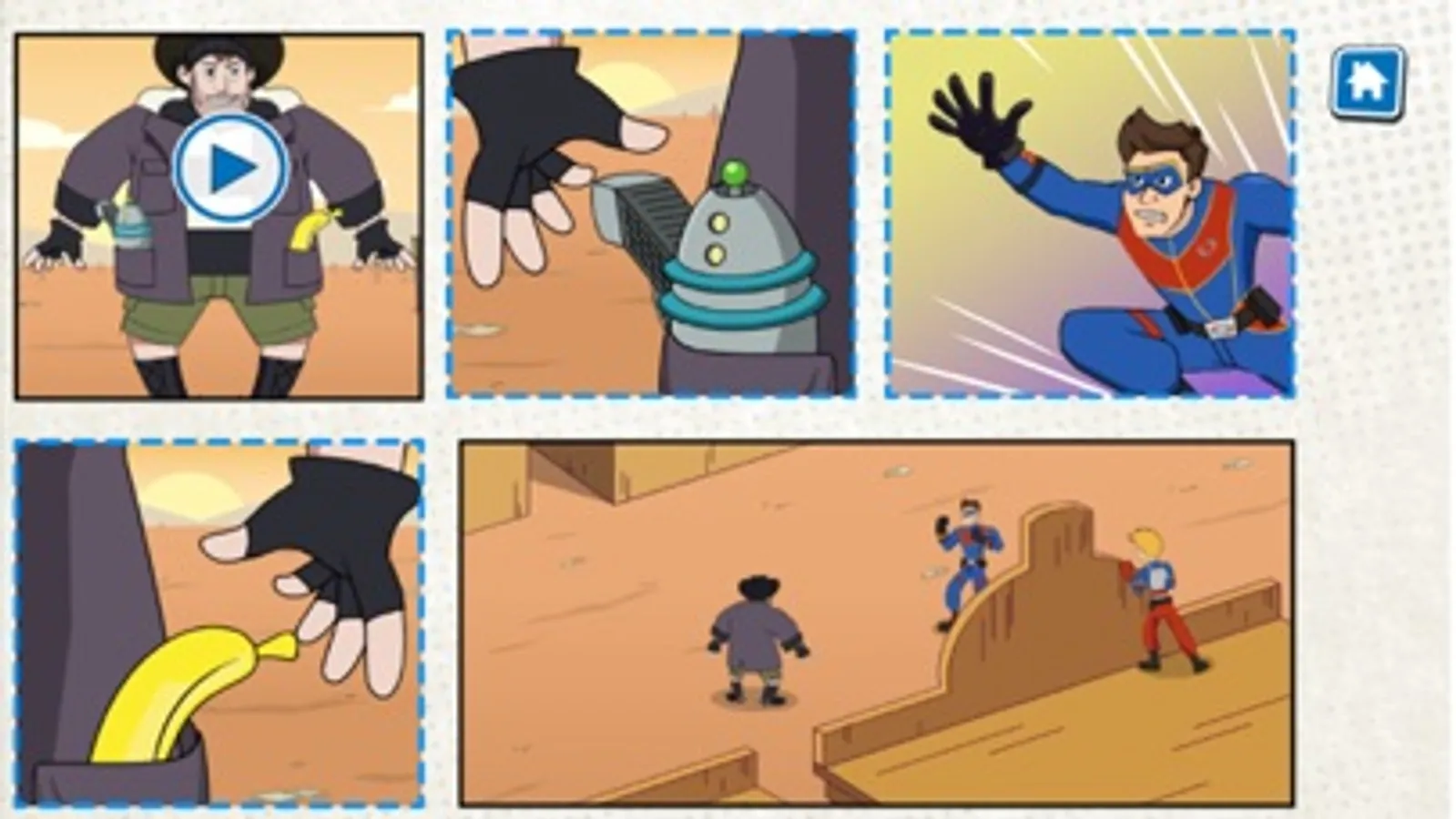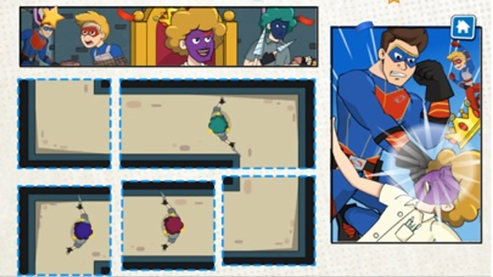 这是一个剪影益智解谜游戏,通过重构动态漫画框架,来帮助超人惩治犯罪!